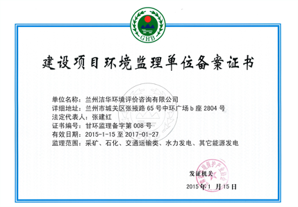 建設(shè)項(xiàng)目環(huán)境監(jiān)理單位備案證書(shū)